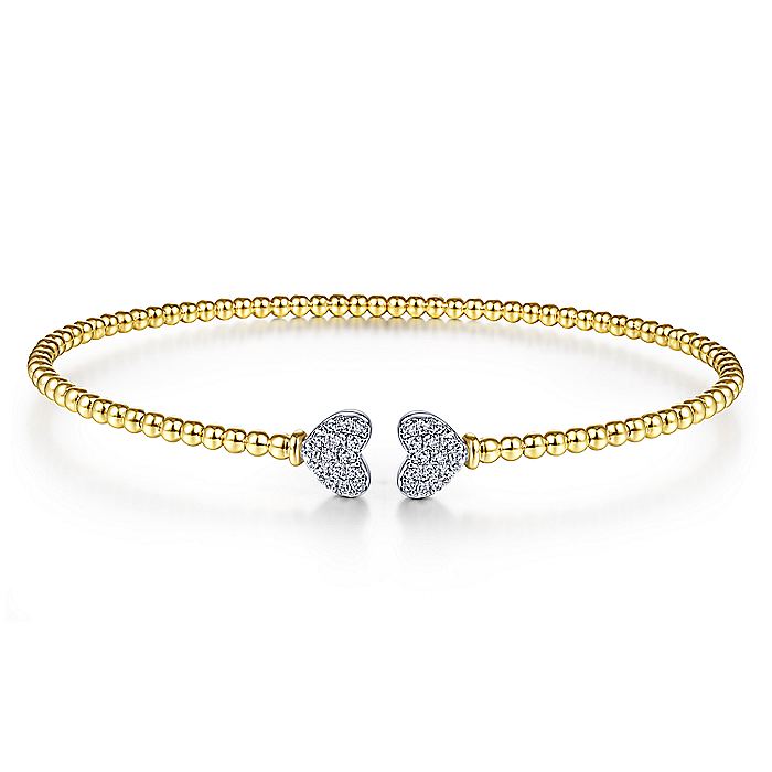 Gabriel & Co. BG4253-62M45JJ 14K Yellow Gold Bujukan Split Cuff Bracelet with White Gold Pavé Diamond Hearts