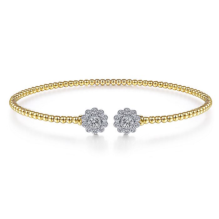 Gabriel & Co. BG4254-62M45JJ 14K White&Yellow Gold Bujukan Split Cuff Bracelet with Diamond Flowers