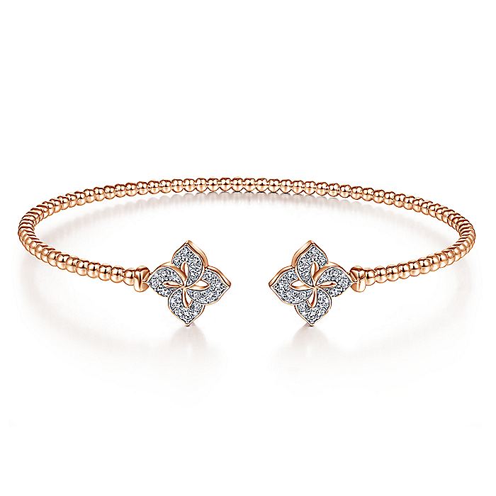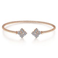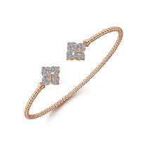 HOME / Gabriel & Co. BG4256-62K45JJ 14K Rose Gold Open Bangle with Diamond Flowers