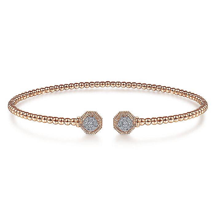 HOME / Gabriel & Co. BG4261-62K45JJ 14K Rose Gold Bujukan Split Cuff Bracelet with Diamond Pavé Hexagon Caps