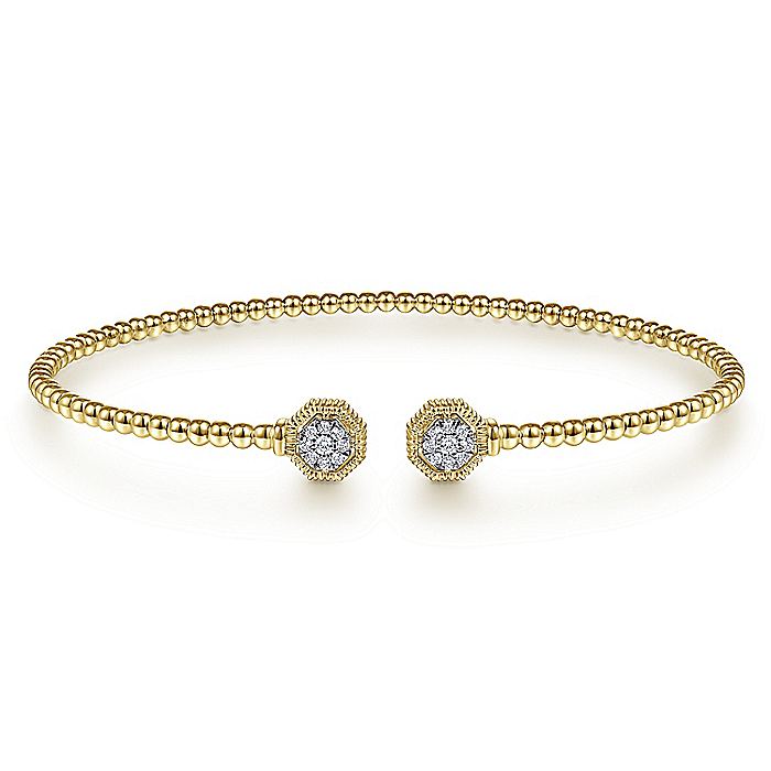 HOME / Gabriel & Co. BG4261-65Y45JJ 14K Yellow Gold Bujukan Split Cuff Bracelet with Diamond Pavé Hexagon Caps