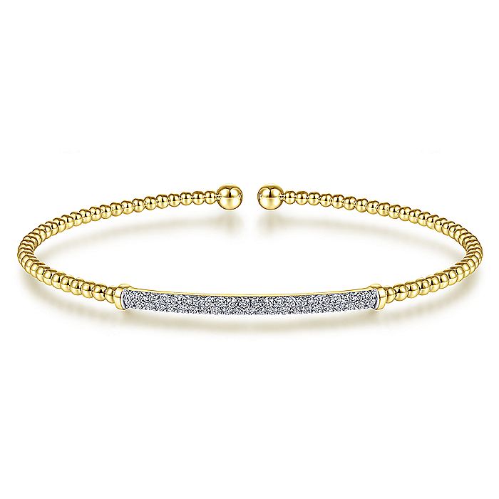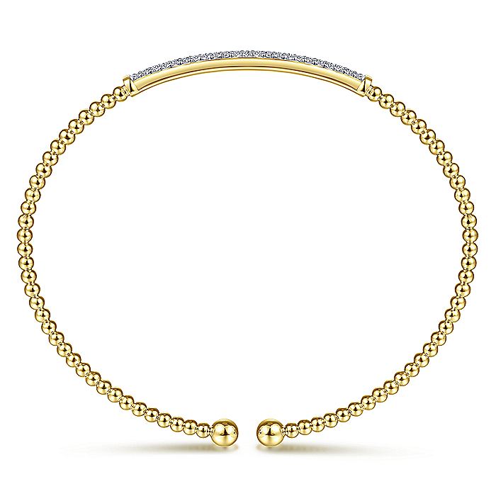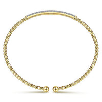 HOME / Gabriel & Co. BG4262-62Y45JJ 14K Yellow Gold Bujukan Split Cuff Bracelet with Diamond Pave Bar in size 6.25