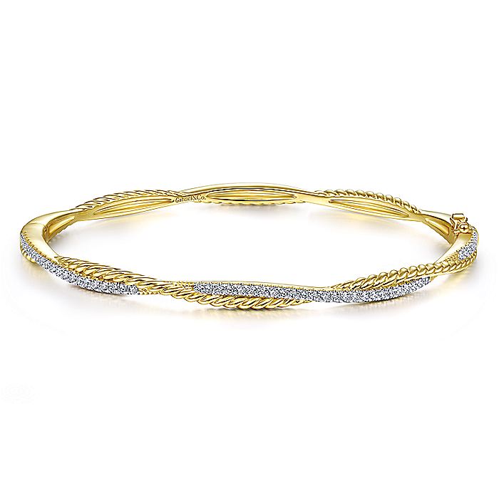 HOME / Gabriel & Co. BG4275-62Y45JJ 14K Yellow Gold Twisted Rope and Diamond Bangle
