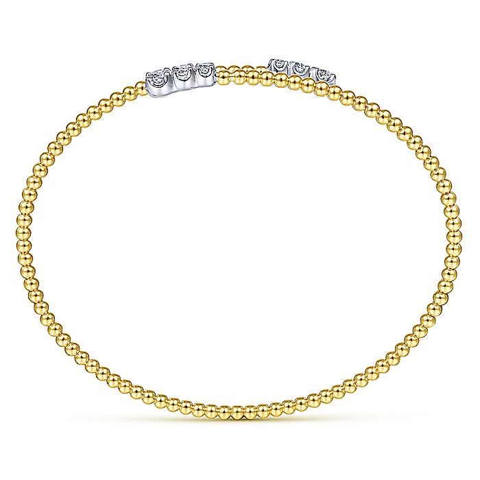 HOME / Gabriel & Co. BG4278-62M45JJ 14K Yellow Gold Bujukan Bead Bypass Bangle with Graduating Diamond Caps