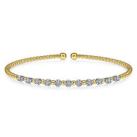 Gabriel & Co. BG4279-62M45JJ 14K Yellow Gold Bujukan Split Cuff Bracelet with Round White Gold Diamond Stations in size 6.25