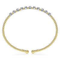HOME / Gabriel & Co. BG4279-62M45JJ 14K Yellow Gold Bujukan Split Cuff Bracelet with Round White Gold Diamond Stations in size 6.25