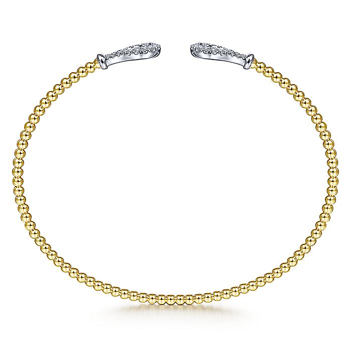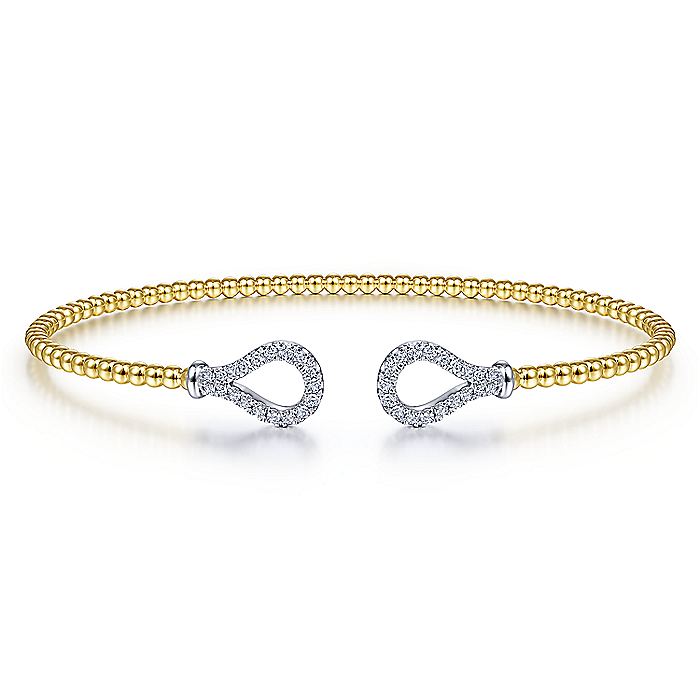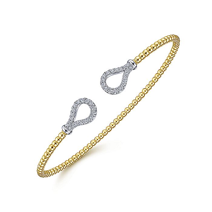 HOME / Gabriel & Co. BG4328-62M45JJ 14K Yellow-White Gold Open Bujukan Bangle with Diamond Teardrops