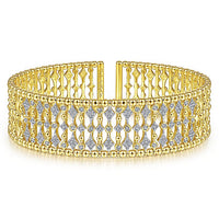 HOME / Gabriel & Co. BG4334-62Y45JJ Wide 14K Yellow Gold Cage Cuff Bracelet with Diamond Stations