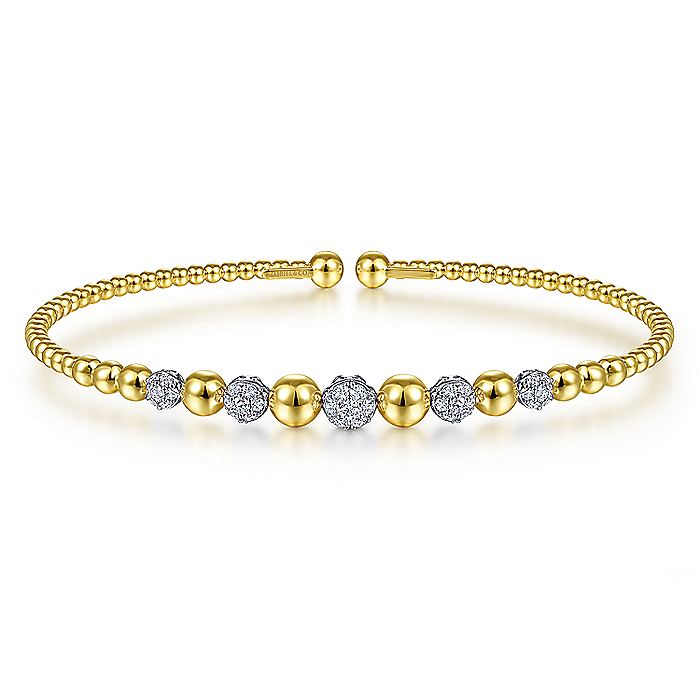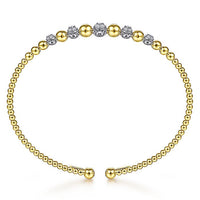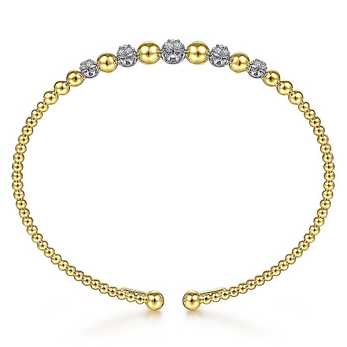 HOME / Gabriel & Co. BG4362-62M45JJ 14K Yellow-White Gold Bujukan Cuff Bracelet with Pave Diamond Stations in size 6.25