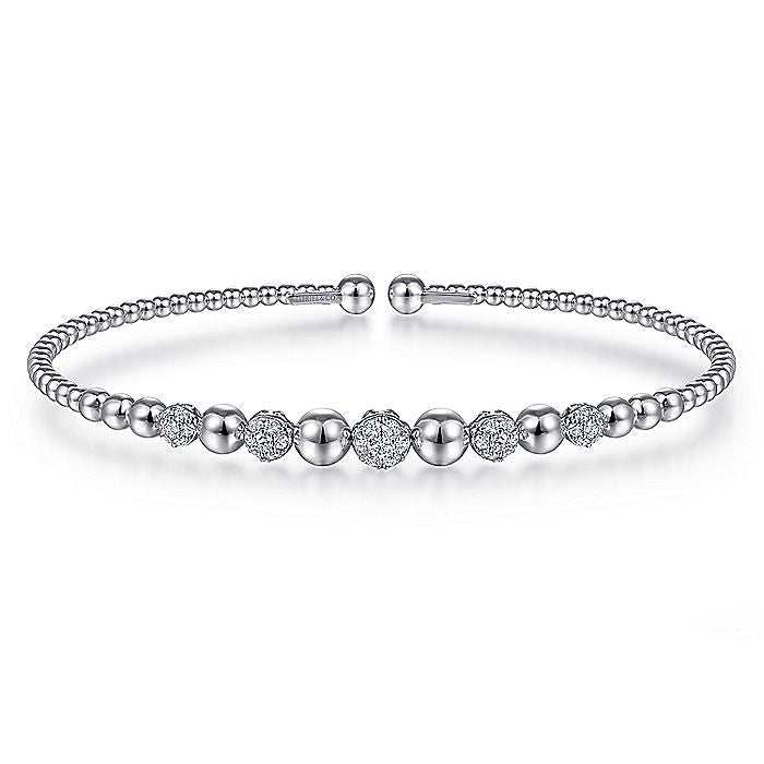 HOME / Gabriel & Co. BG4362-62W45JJ 14K White Gold Bujukan Bead Cuff Bracelet with Pavé Diamond Stations