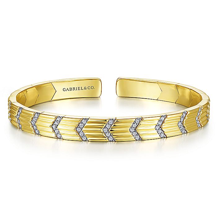 HOME / Gabriel & Co. BG4379-62Y45JJ 14K Yellow Gold Cuff Bracelet with Pavé Diamond Chevron Stations