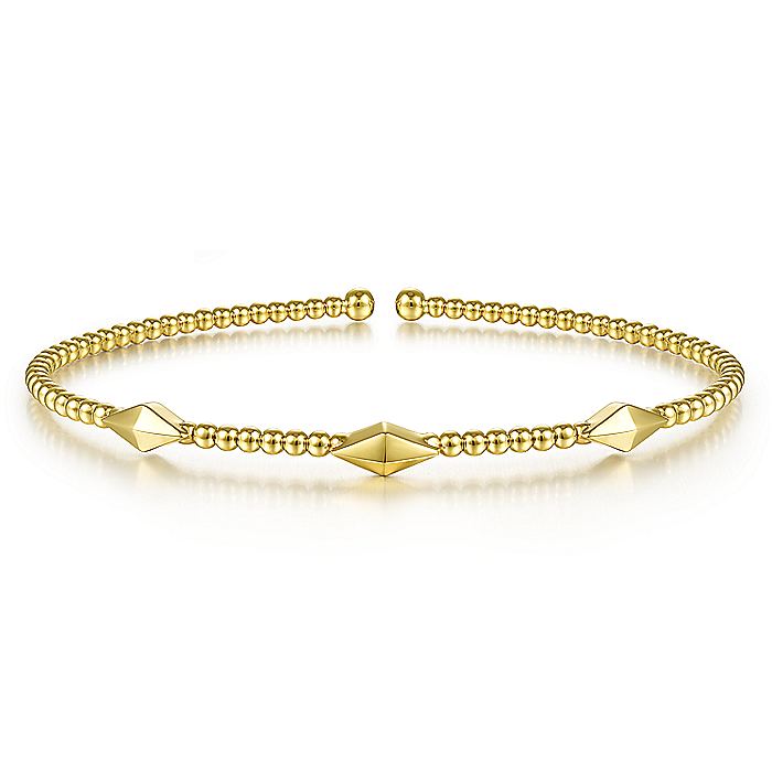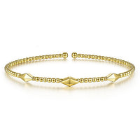 Gabriel & Co. BG4421-62Y4JJJ 14K Yellow Gold Bujukan Cuff Bracelet with Pyramid Stations in size 6.25
