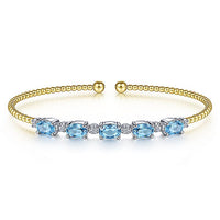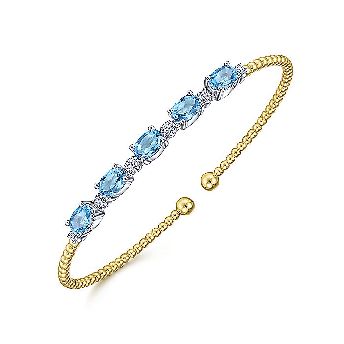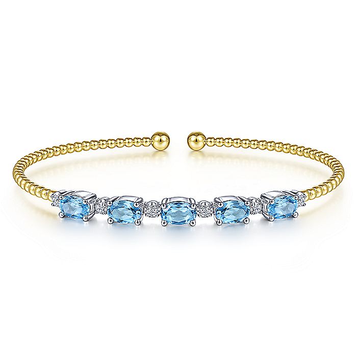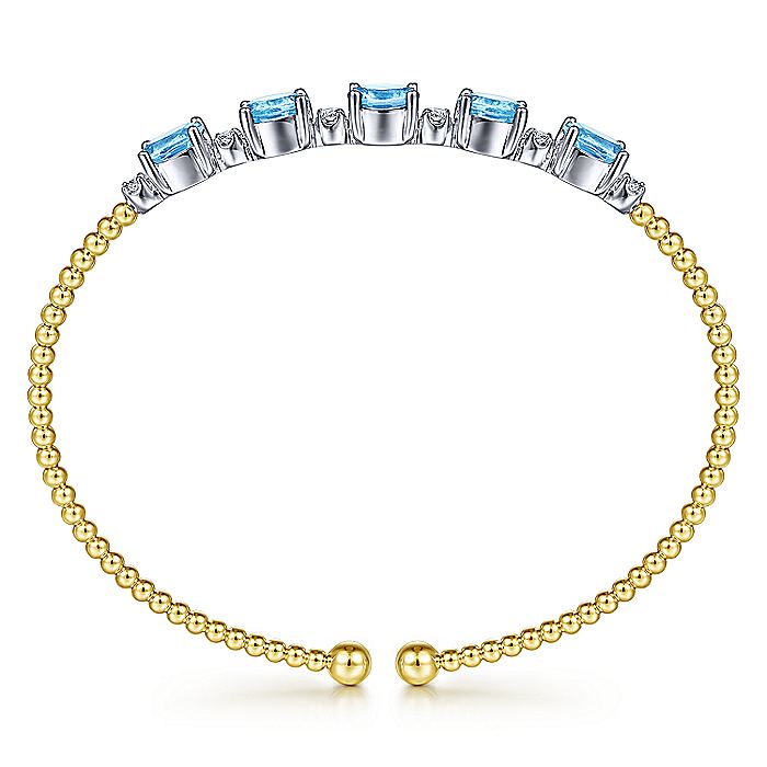 HOME / Gabriel & Co. BG4448-62M45BT 14K White-Yellow Gold Bujukan Bead Cuff Bracelet with Blue Topaz and Diamond Stations