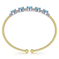 Gabriel & Co. BG4448-62M45BT 14K White-Yellow Gold Bujukan Bead Cuff Bracelet with Blue Topaz and Diamond Stations