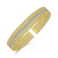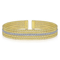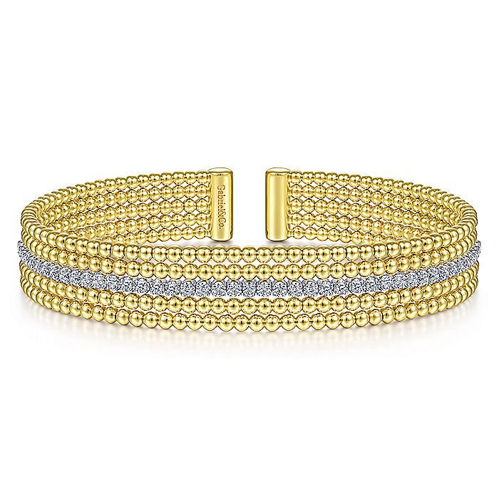 Gabriel & Co. BG4449-62M45JJ Wide 14K White-Yellow Gold Bujukan Bead Cuff Bracelet with Inner Diamond Channel