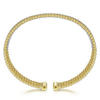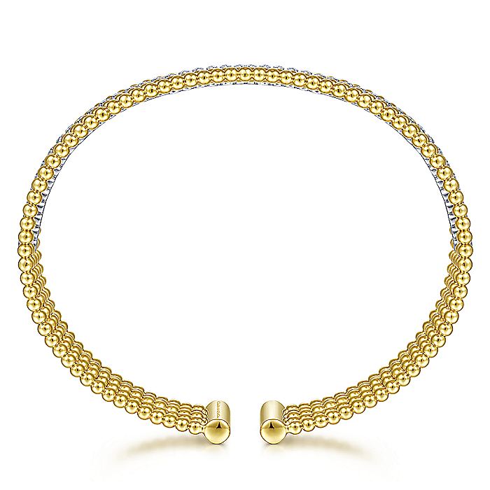 HOME / Gabriel & Co. BG4449-62M45JJ Wide 14K White-Yellow Gold Bujukan Bead Cuff Bracelet with Inner Diamond Channel