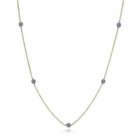 This elegant necklace features five clustered stations adorned with brilliant white diamonds.