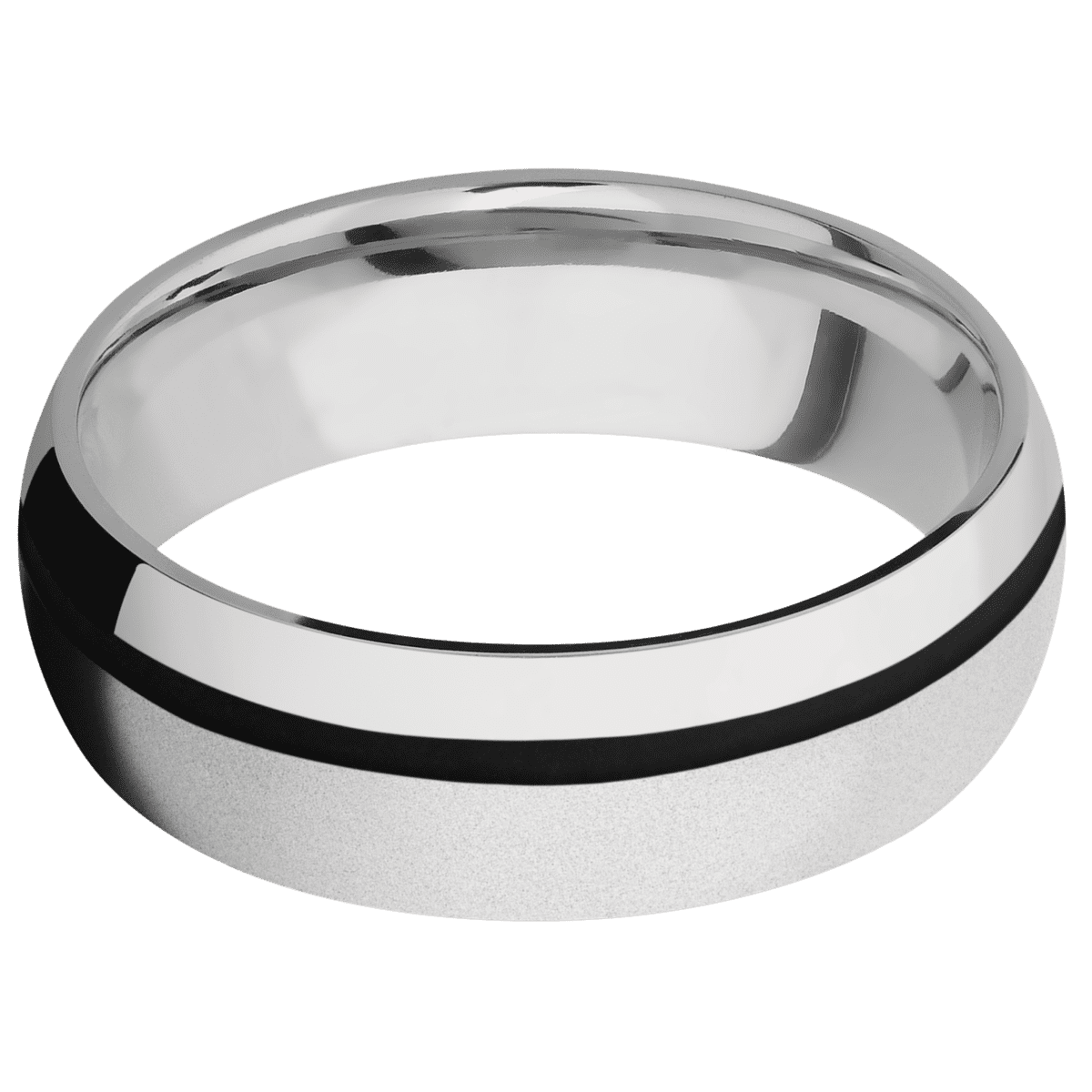 7 mm wide/Domed/Cobalt Chrome band with one 1 mm Off Center inlay of Black