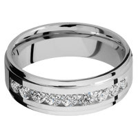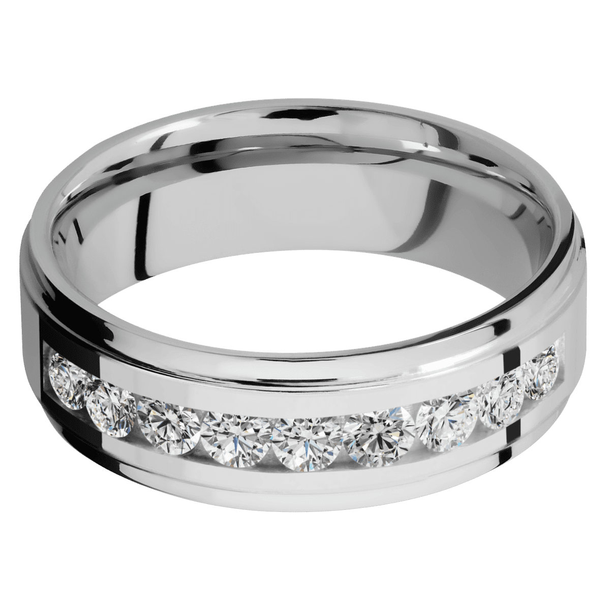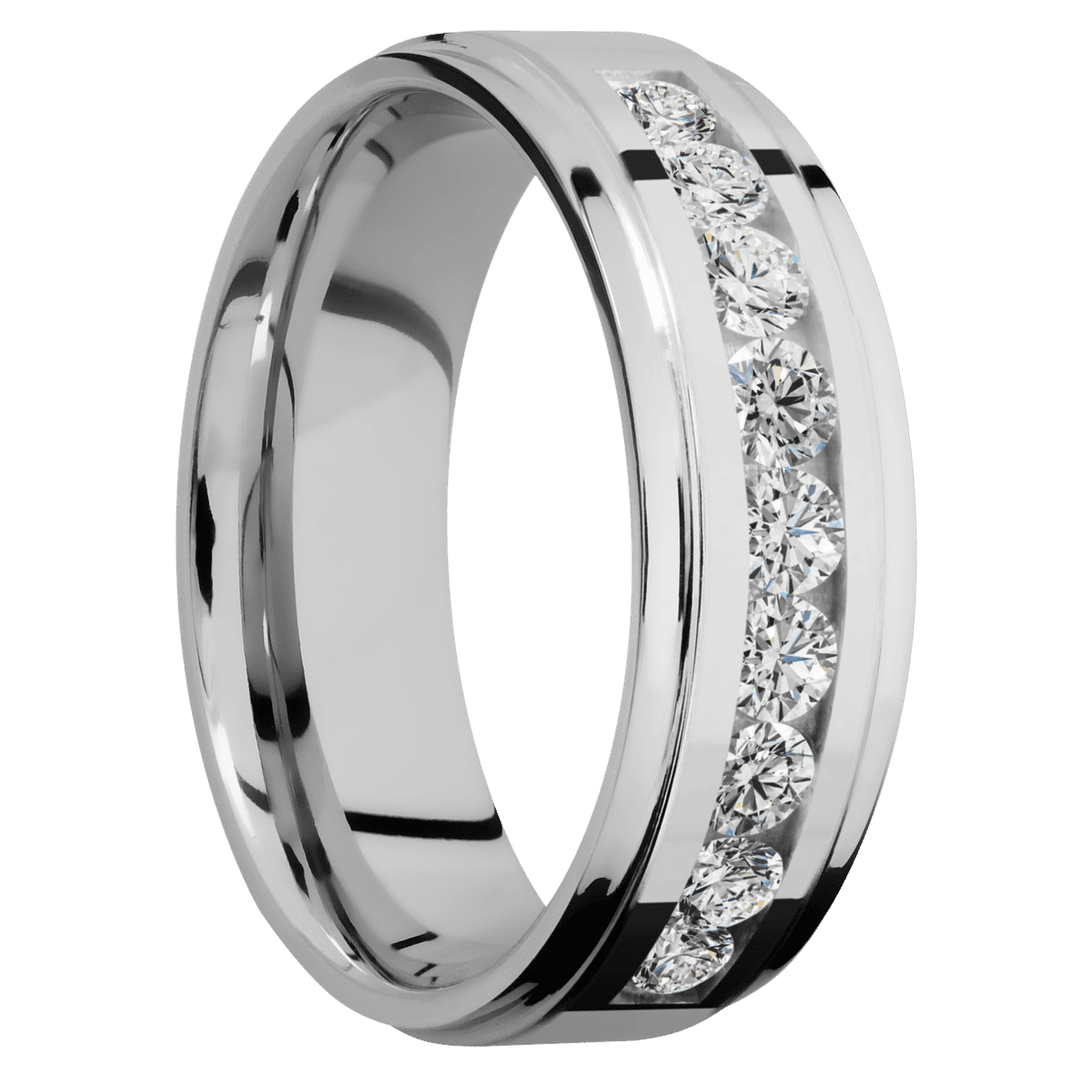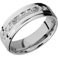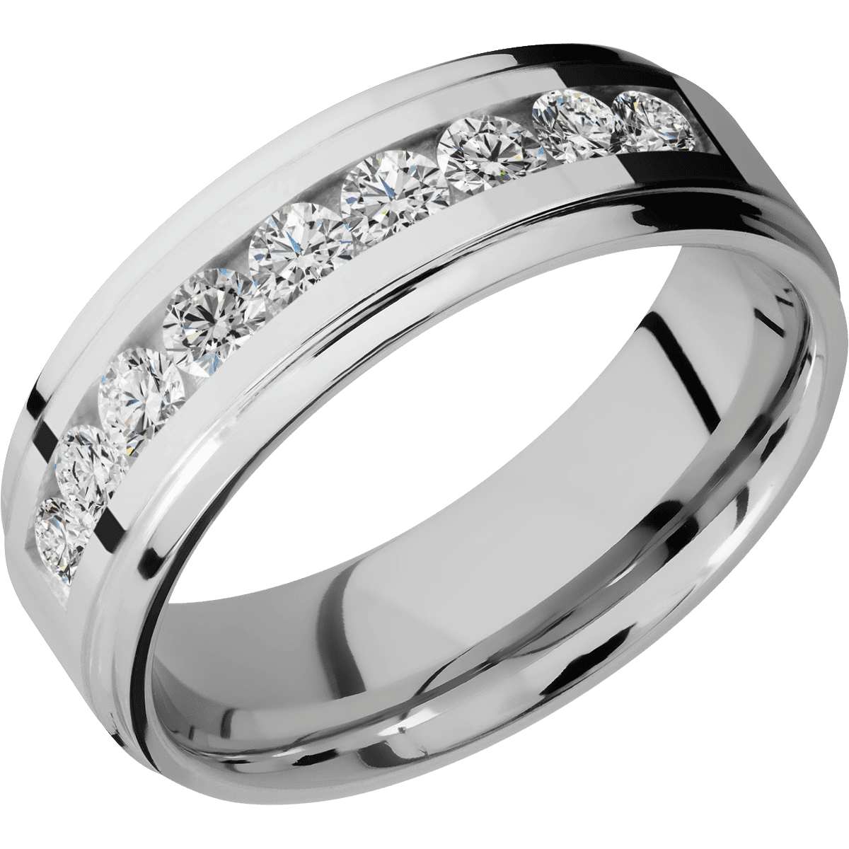 7 mm wide/Flat Grooved Edges/Cobalt Chrome band with an arrangement of 9, .1 carat Round Diamond stones in a Channel setting. - TCW 0.9ct. - TCW 0.9ct.