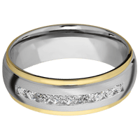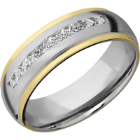 7 mm wide/Domed Stepped Down Edges/Cobalt Chrome band with two 1 mm Edge inlays of 14K Yellow Gold and featuring an arrangement of 9, .05 carat Round Diamond stones in a Channel setting - TCW 0.45ct. - TCW 0.45ct.