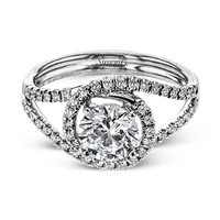 This beautiful ring features a split-shank design that forms a unique halo and is set with sparkling diamonds.
