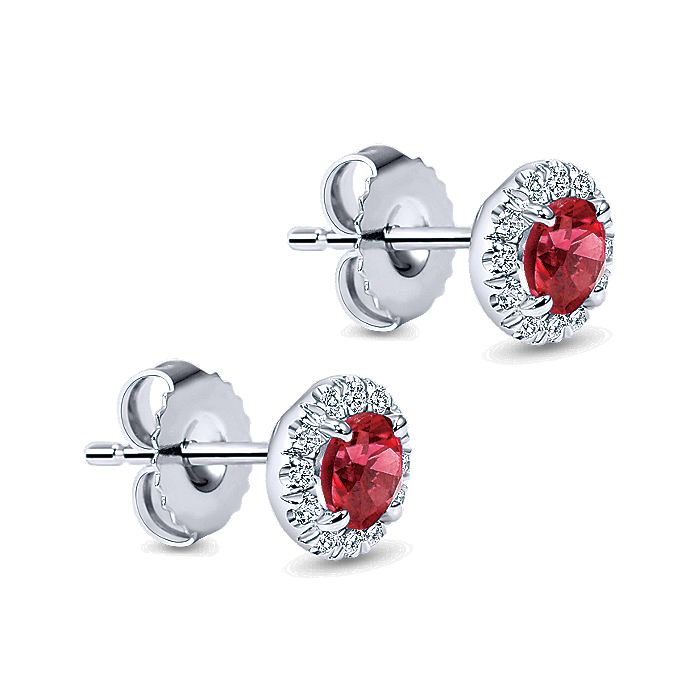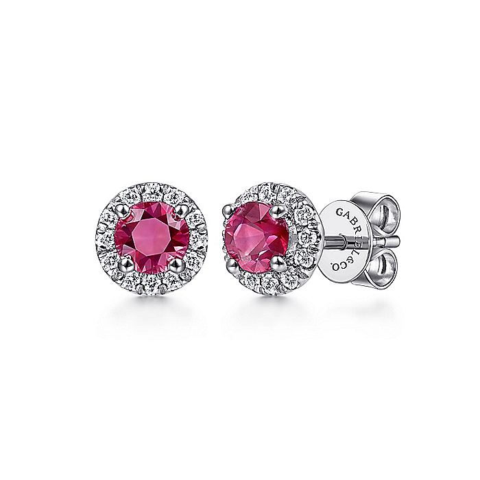 HOME / Gabriel & Co. EG11602W45RA 14K White Gold Round Diamond Halo Ruby Stud Earrings