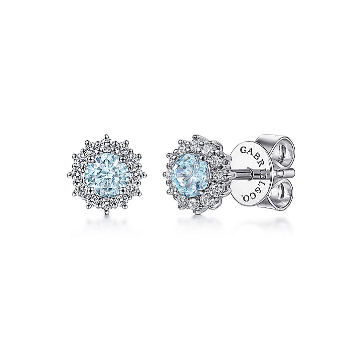 Gabriel & Co. EG11819W45AQ 14K White Gold Round Halo Aquamarine and Diamond Stud Earrings