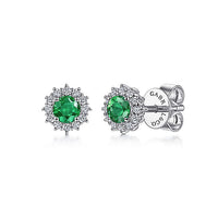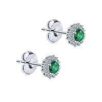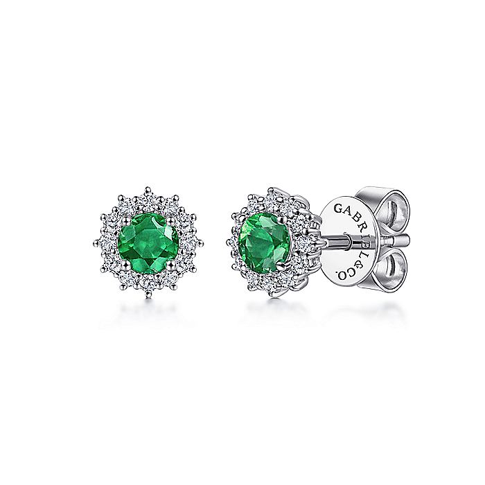 HOME / Gabriel & Co. EG11819W45EA 14K White Gold Emerald and Diamond Halo Stud Earrings