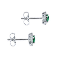 In these timeless stud earrings, each vivid green 0.28ct round cut Emerald is surrounded and enhanced by a 0.12ct bursting diamond halo. Take her breath away with these regal 14k white gold stud earrings boasting a total of 0.24cts of sparkling diamonds.