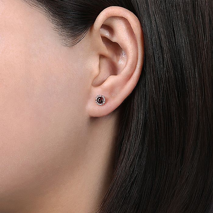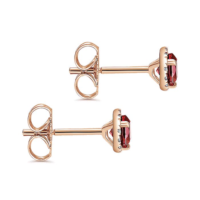 HOME / Gabriel & Co. EG12372K45GN 14K Rose Gold Diamond Halo Garnet Stud Earring