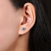 Gabriel & Co. EG12372W45BT 14K White Gold Round Cut Diamond Halo & Swiss Blue Topaz Stud Earring