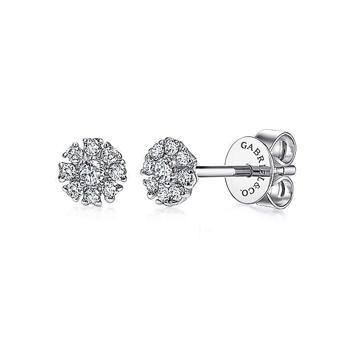 HOME / Gabriel & Co. EG12377W45JJ 14K White Gold Floral Round Diamond Stud Earrings