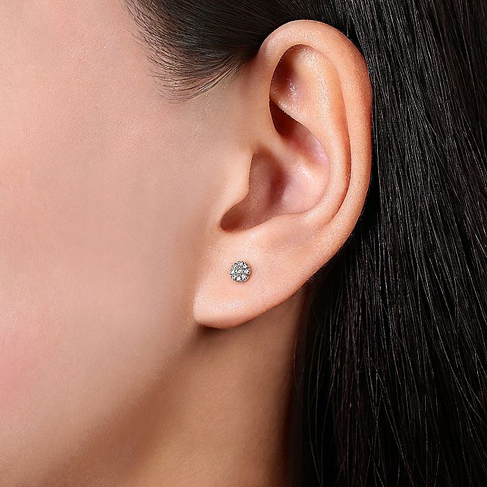 Gabriel & Co. EG12377W45JJ 14K White Gold Floral Round Diamond Stud Earrings
