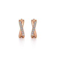 HOME / Gabriel & Co. EG13328K45JJ 14K Rose Gold Twisted 15mm Diamond Huggies
