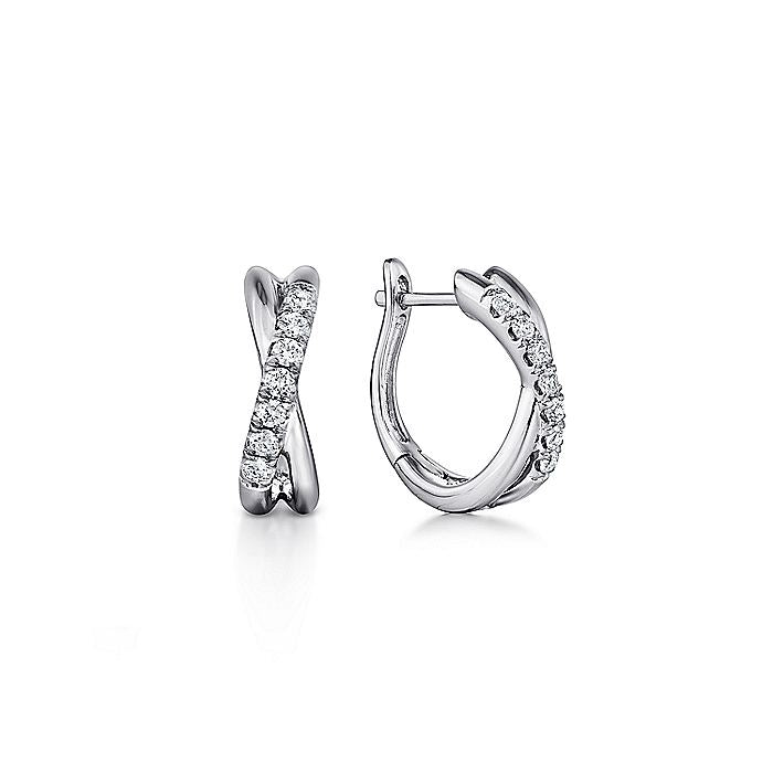 HOME / Gabriel & Co. EG13328W45JJ 14K White Gold Twisted 15mm Diamond Huggies