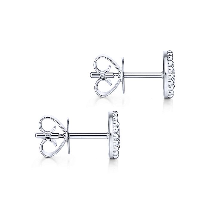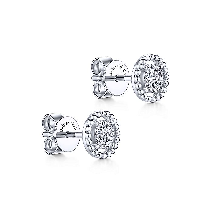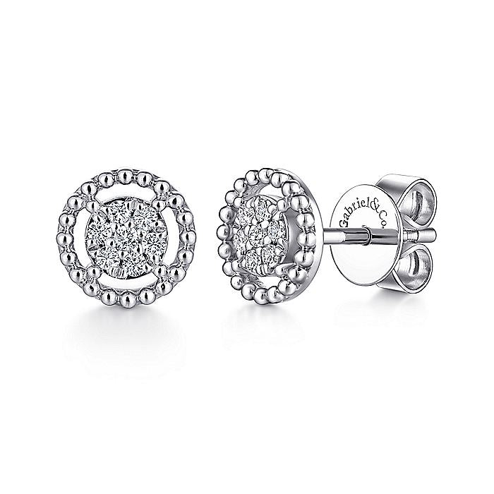 HOME / Gabriel & Co. EG13355W45JJ 14K White Gold Beaded Halo Diamond Pavé Stud Earrings