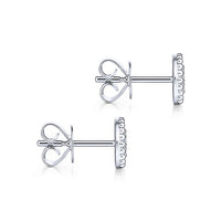 These elegant stud earrings feature 0.11ct sparkling diamond pave surrounded by a halo of beaded white gold