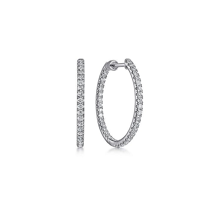 HOME / Gabriel & Co. EG13461W45JJ 14K White Gold French Pavé 20mm Round Inside Out Diamond Hoop Earrings