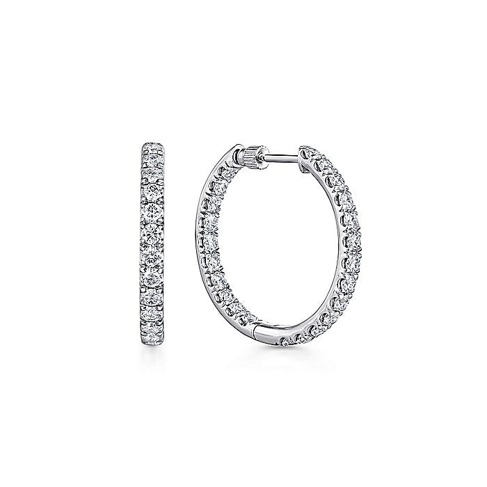 Gabriel & Co. EG13464W45JJ 14K White Gold French Pavé 20mm Round Inside Out Diamond Hoop Earrings