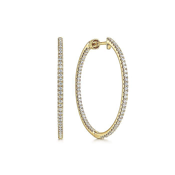 HOME / Gabriel & Co. EG13465Y45JJ 14K Yellow Gold French Pavé 30mm Round Inside Out Diamond Hoop Earrings