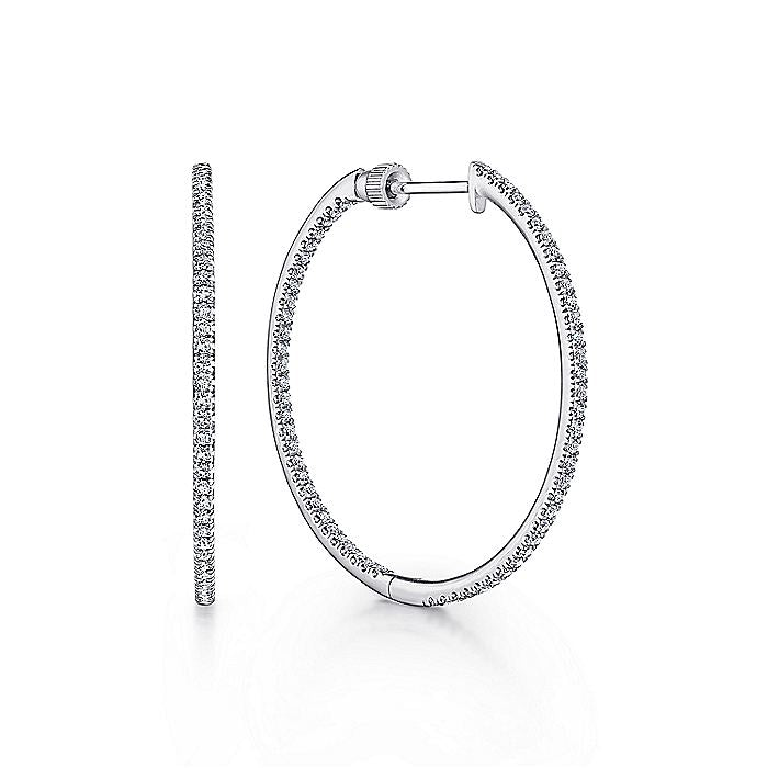 HOME / Gabriel & Co. EG13479W45JJ 14K White Gold French Pavé 30mm Round Inside Out Diamond Hoop Earrings
