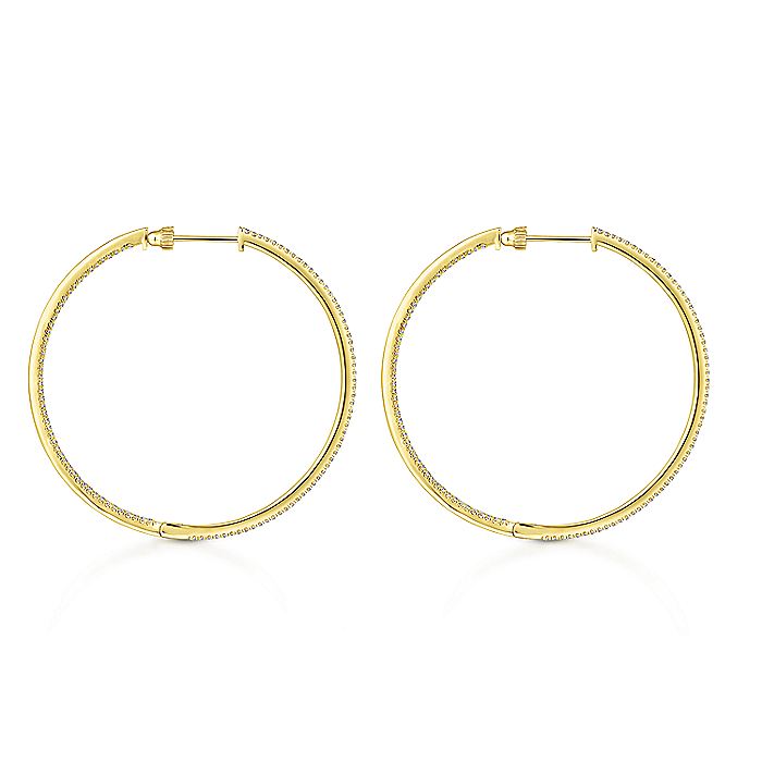 HOME / Gabriel & Co. EG13549Y45JJ 14K Yellow Gold French Pavé 50mm Round Inside Out Diamond Classic Hoop Earrings