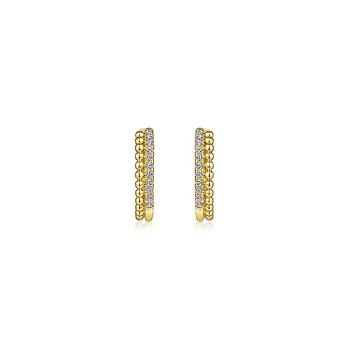 HOME / Gabriel & Co. EG13584Y45JJ 14K Yellow Gold Beaded Pavé 10mm Diamond Huggies