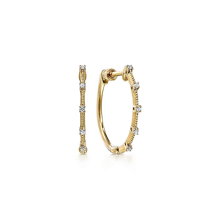 HOME / Gabriel & Co. EG13761Y45JJ 14K Yellow Gold 20mm Classic Diamond Station Hoop Earrings