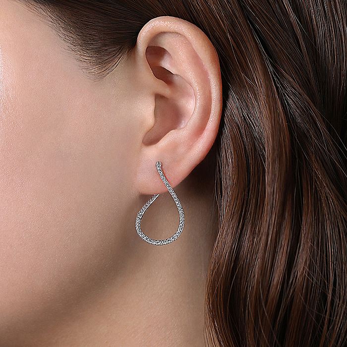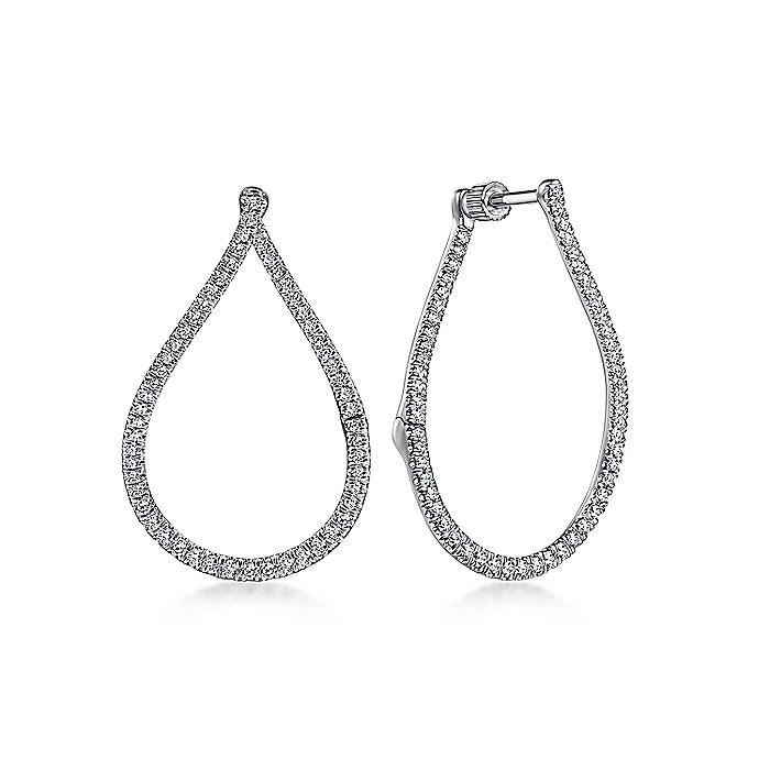 HOME / Gabriel & Co. EG13801W45JJ 14K White Gold Open Pear Shape Diamond Huggies