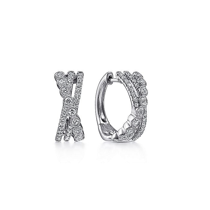 HOME / Gabriel & Co. EG13817W45JJ 14K White Gold Twisted 10mm Diamond Huggies