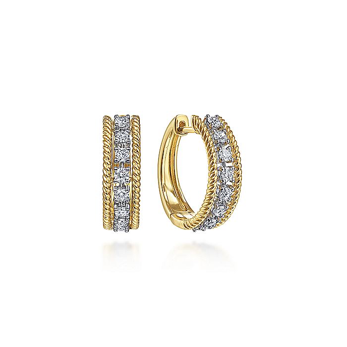 HOME / Gabriel & Co. EG13852M45JJ 14K Yellow-White Gold Twisted 15mm Diamond Huggies