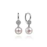HOME / Gabriel & Co. EG13933W45PL 14K White Gold Cluster Diamond Disc and Pearl Drop Earrings