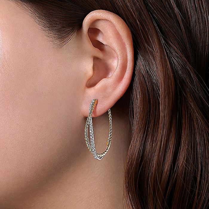 HOME / Gabriel & Co. EG13947M45JJ 14K Yellow-White Gold Twisted 35mm Classic Diamond Hoop Earrings