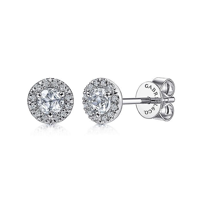 HOME / Gabriel & Co. EG13958W45WT 14K White Gold Diamond Halo and White Topaz Stud Earrings